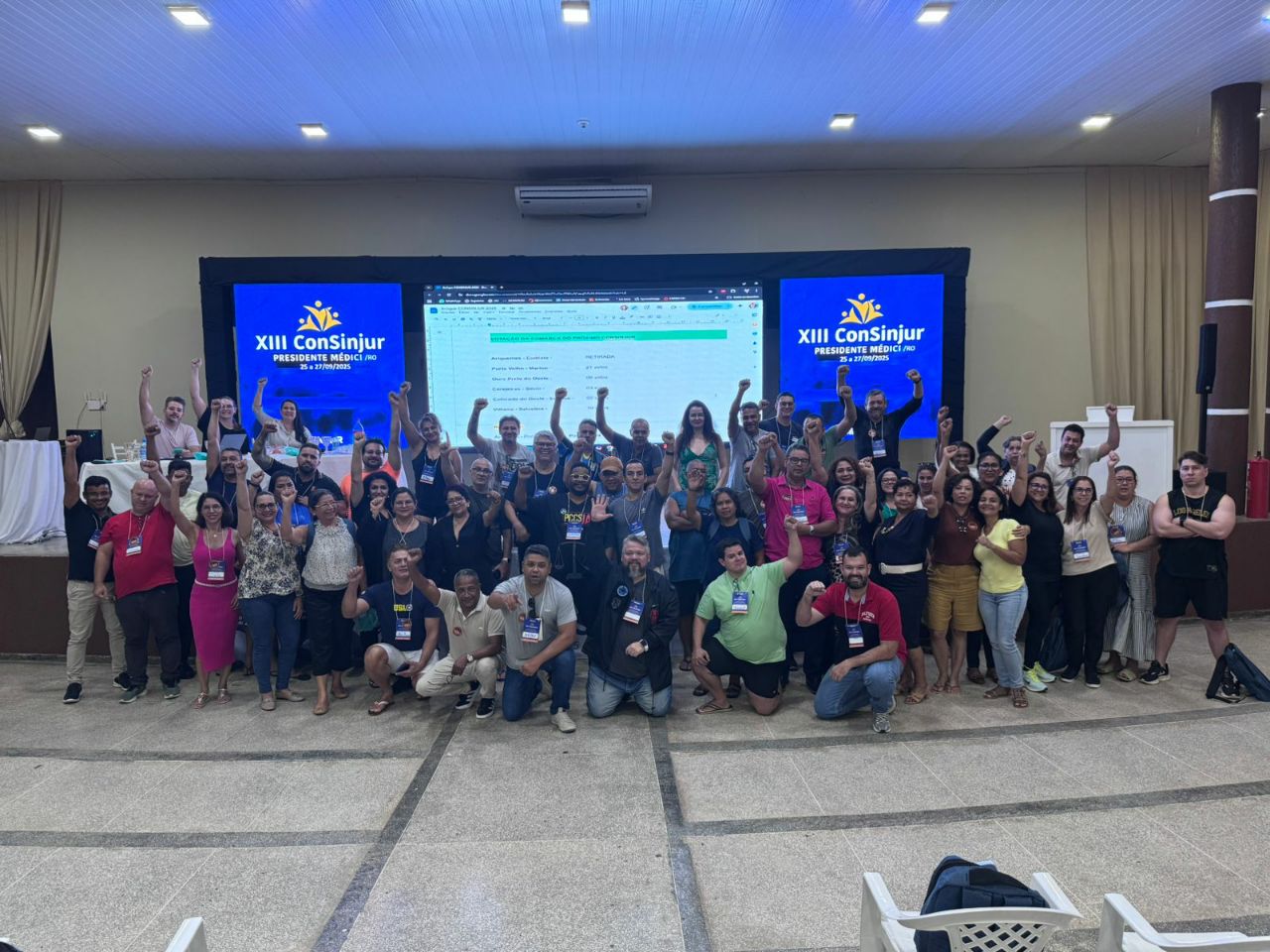 Presidente Médici (RO), 25 a 27/9/2025 — O Sindicato dos Trabalhadores do Poder Judiciário do Estado de Rondônia (SINJUR) realizou o XIII ConSinjur, encontro que reuniu diretoria executiva, delegados sindicais, representantes de aposentados e congressistas eleitos em todas as comarcas. O congresso foi coordenado pela Diretoria de Formação Sindical, conduzida por Wberlei de Melo da Silva, e teve três dias de debates, palestras e deliberações sobre a pauta da categoria e atualização estatutária.