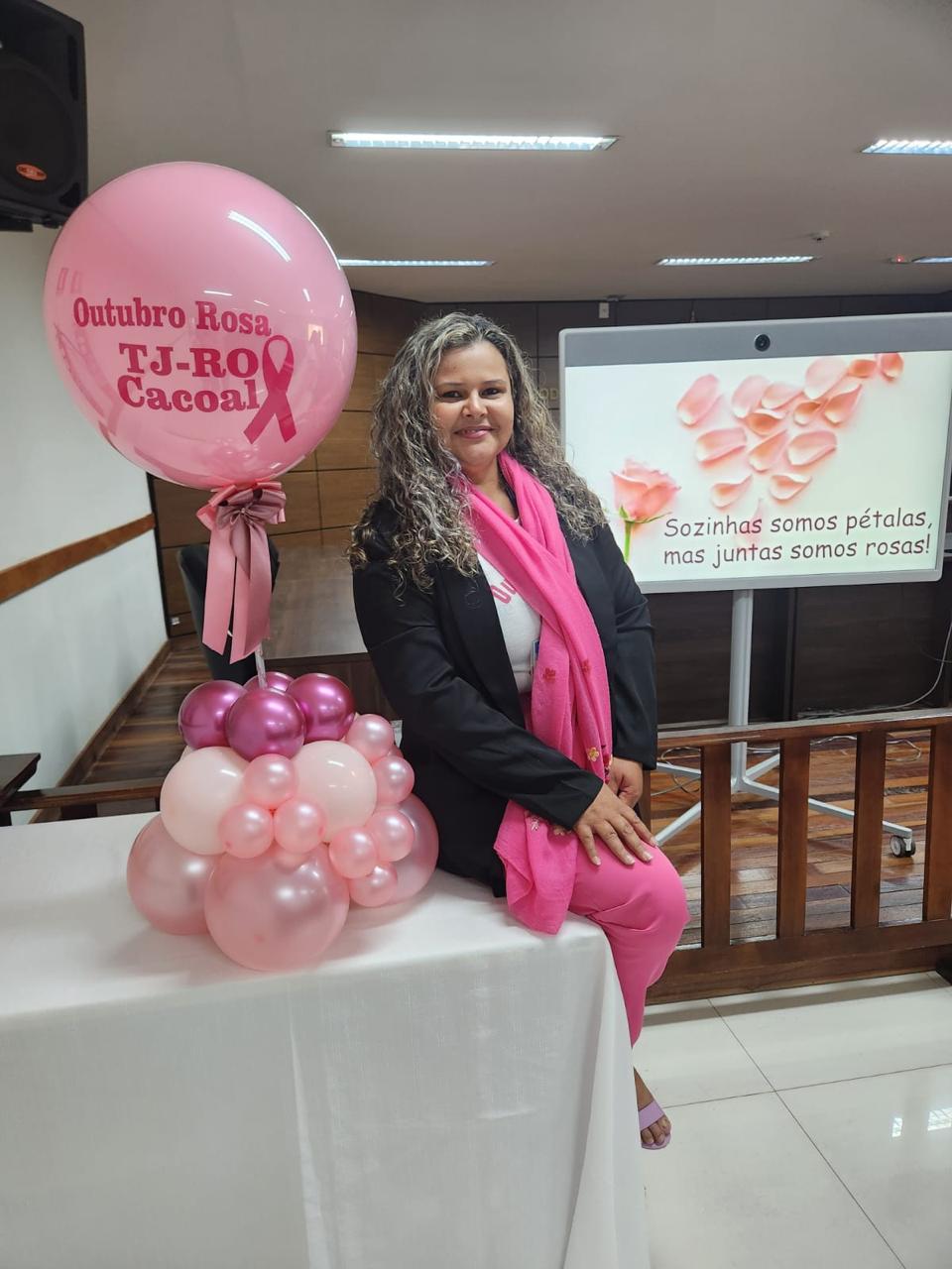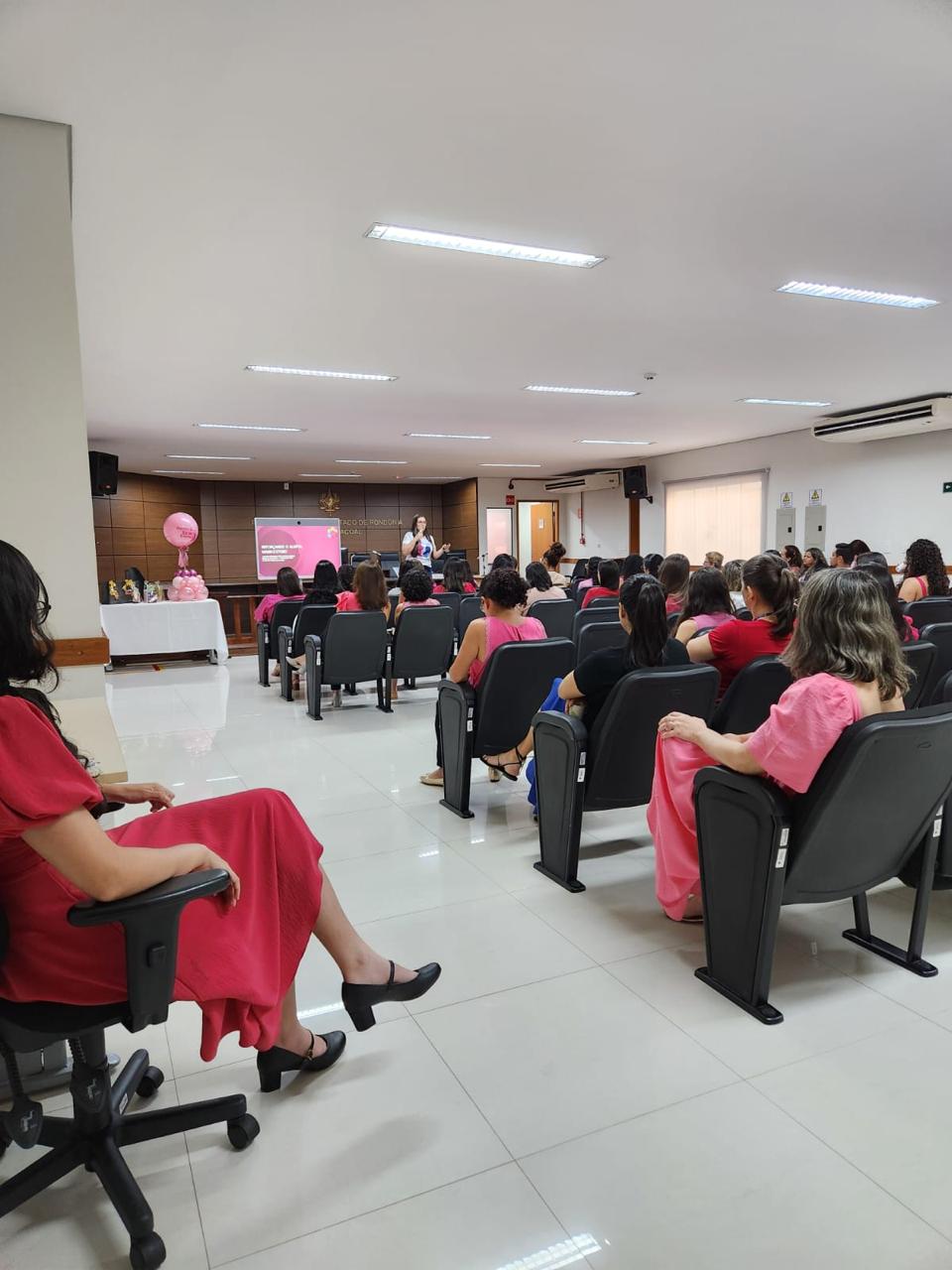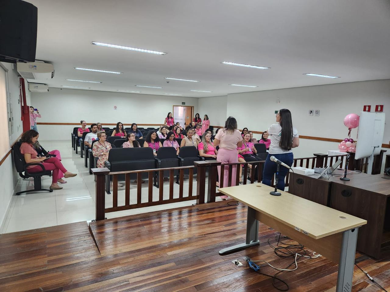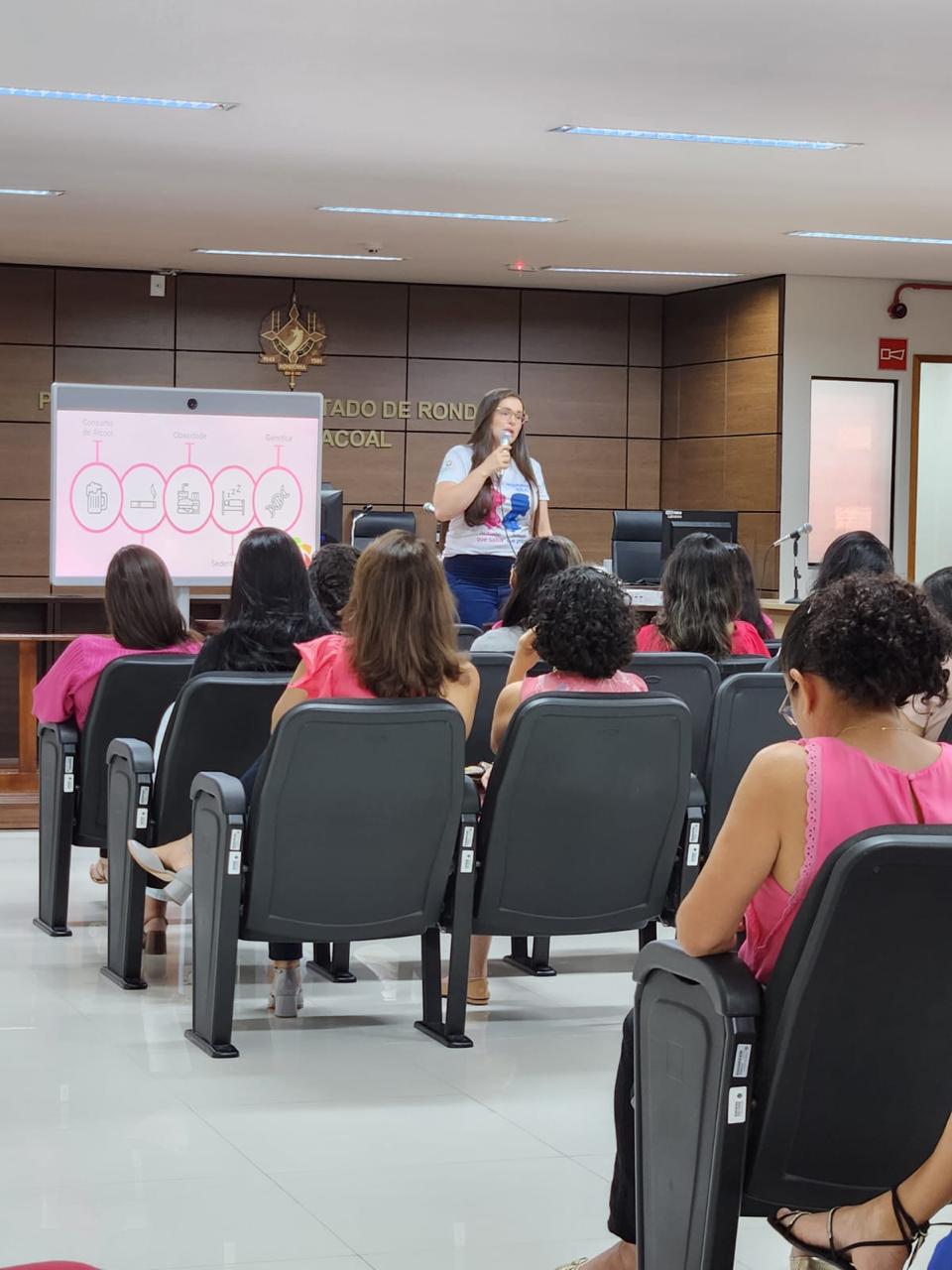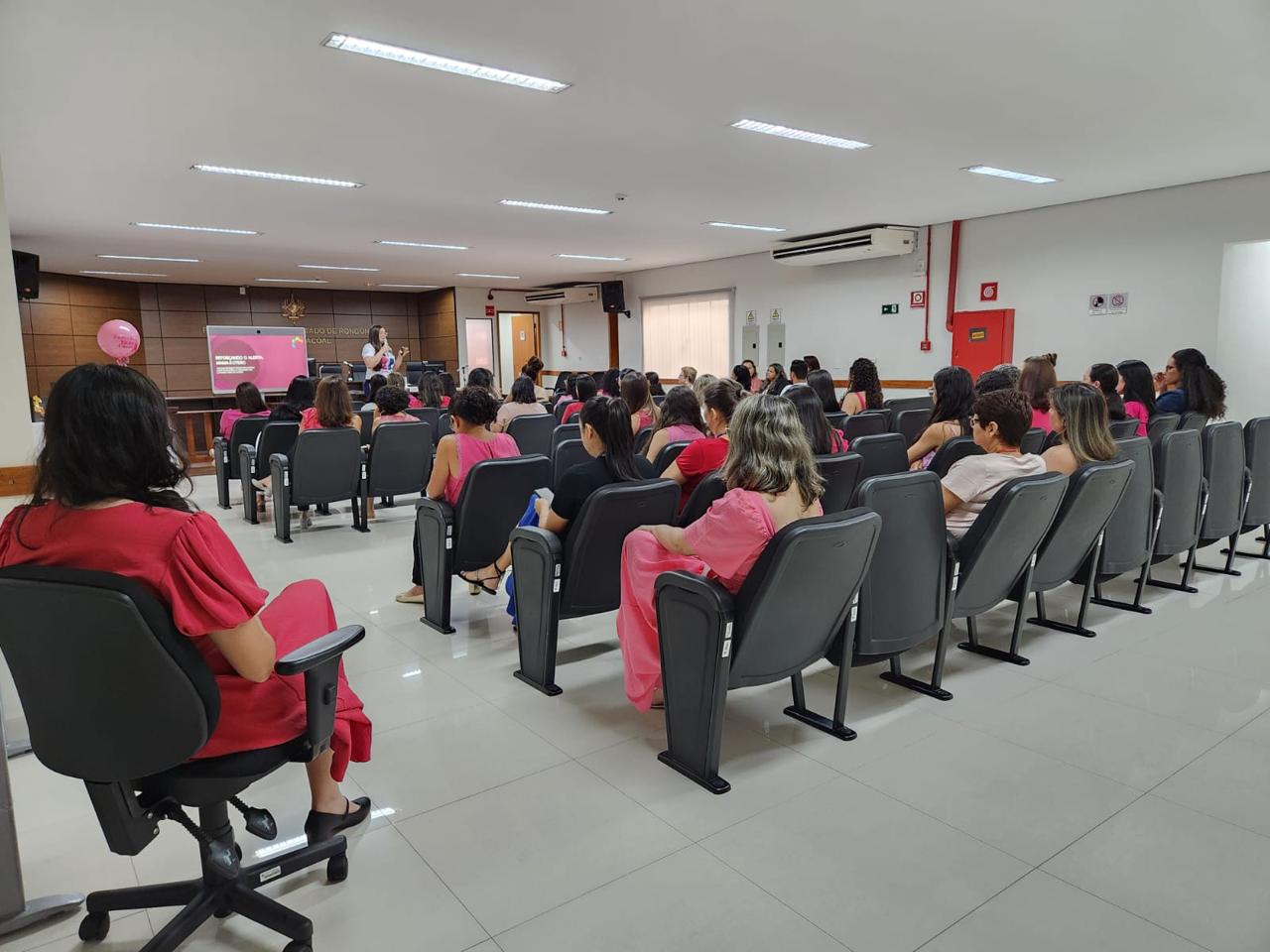 O Sindicato dos Trabalhadores do Poder Judiciário do Estado de Rondônia (SINJUR) apoiou, no dia 24 de outubro, o evento Outubro Rosa promovido pelo Núcleo Psicossocial, em parceria com a Administração do Fórum de Cacoal. A iniciativa teve como objetivo conscientizar os trabalhadores do Judiciário sobre a importância da prevenção e do diagnóstico precoce do câncer de mama e do colo do útero, além de promover o autocuidado e o bem-estar das mulheres.